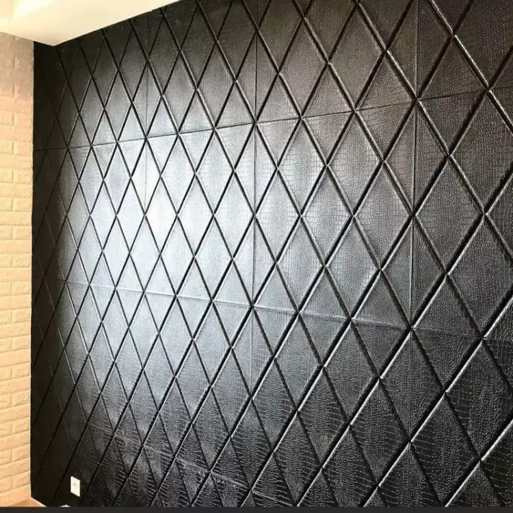 دیوارپوش فومی پشت چسب دارطرح لوزی چرمی رنگ مشکی(طرح چرم کروکدیل)